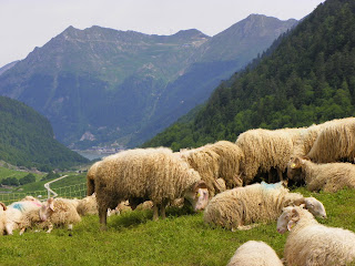 I’ve braved the Pyrenees before, but never at this particular crossing. This traverse was less rugged and a peaceful quiet prevailed. We happened upon a flock of sheep, very picturesque. Molly, in her youthful vigor, burst forth, camera in hand. I sat in the car and mused. It was one of those perfect moments and the only possible conjure were the words, “sheep may safely graze.”